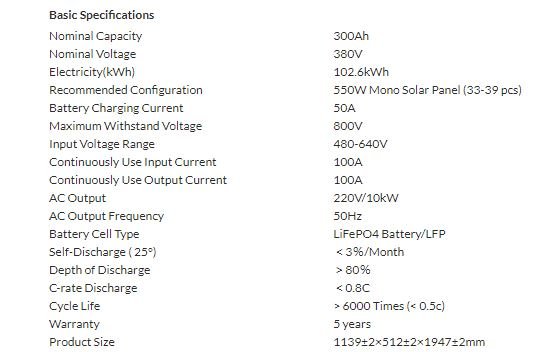 Product Details of 100kWh Solar Lithium Battery Inverter Set