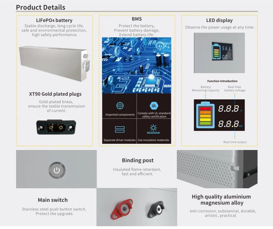 With LiFePO4 battery, high safety, long life span.
