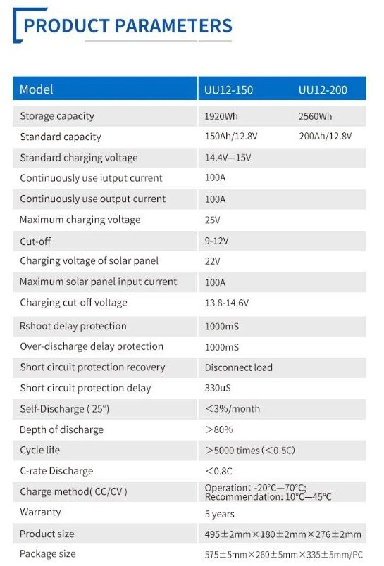 - With longer span life LiFePO4 battery, over 12 years lifespan, ensure the whole set products’life span.