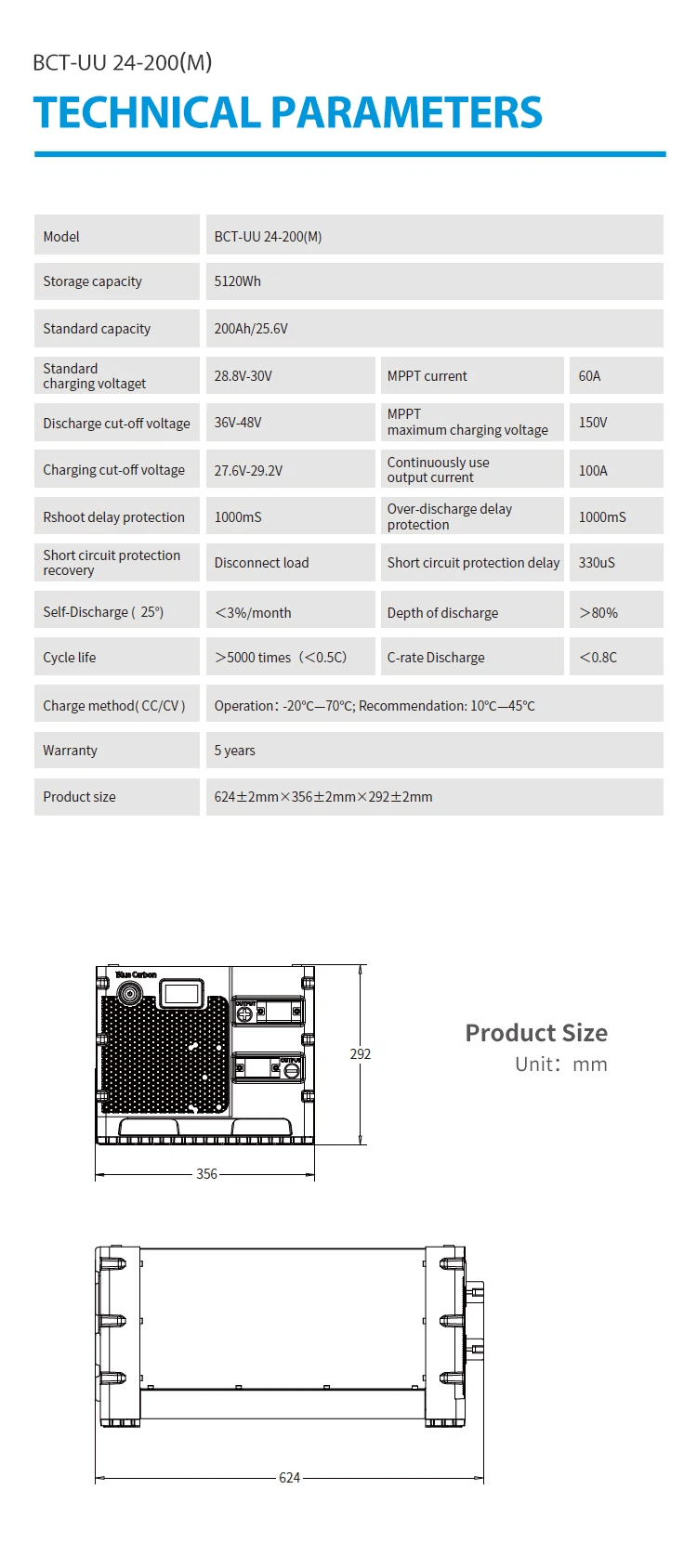 Rated voltage: 25.6V, capacity: 200Ah