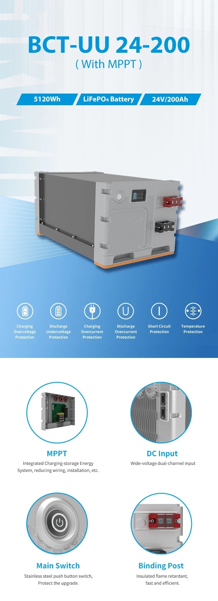3. With longer span life LiFePO4 battery, over 12 years lifespan, ensure the whole set products life span.