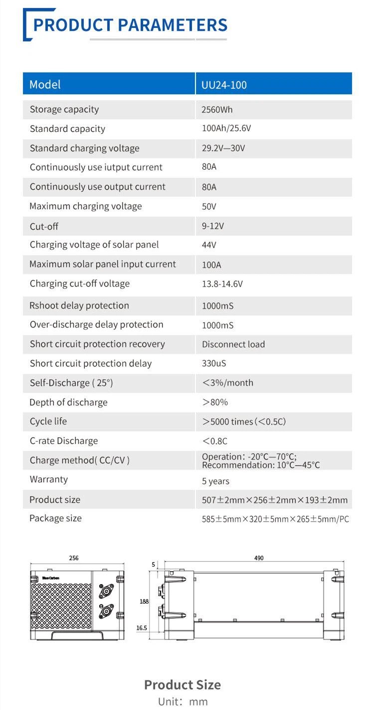 Product Details of 25.6V 24V LiFePO4 Solar Battery