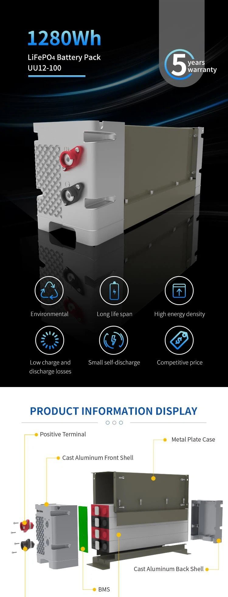 | BMS 12V 100AH 1280wh LiFePO4 Battery Pack | |