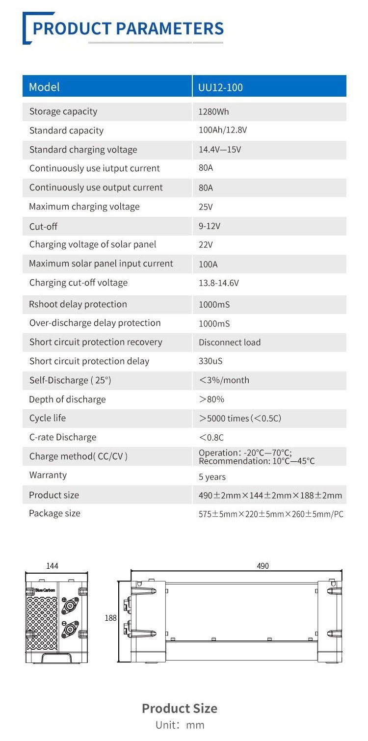 | Standard capacity | 100AH |