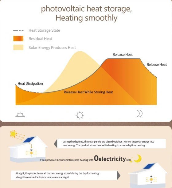 At night, the product uses all the heat energy stored during the day for heating at night to ensure the indoor temperature at night.
