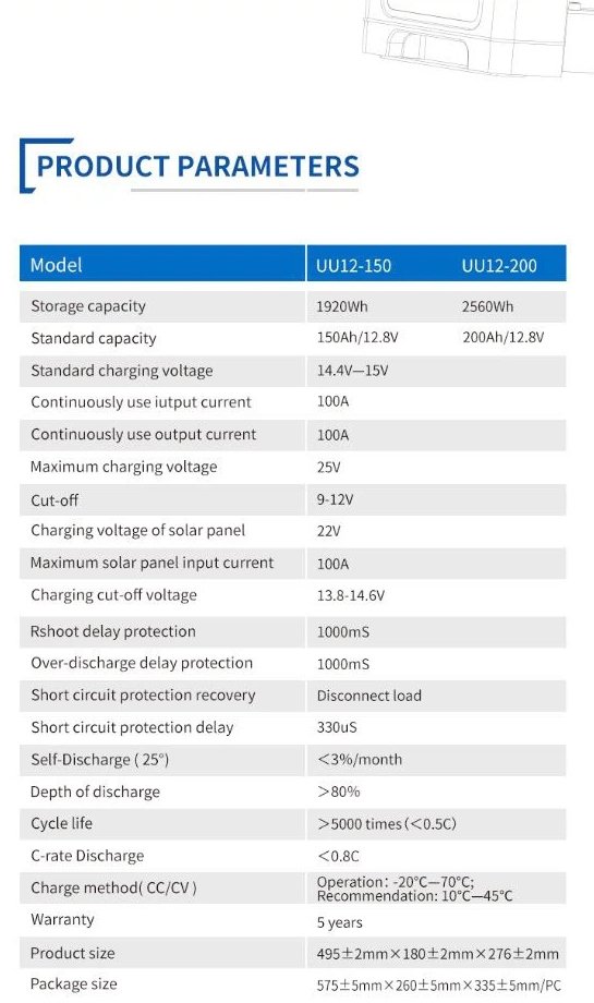 - Rated Voltage: 12.8V Capacity 100Ah