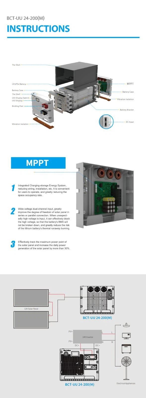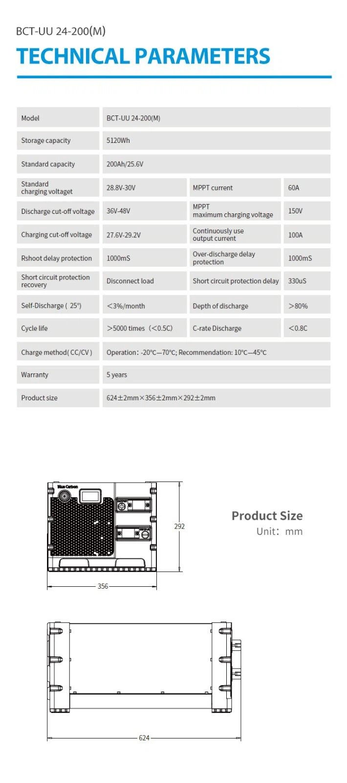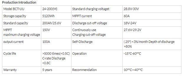 Rechargeable LiFePO4 battery 24V/200Ah MPPT off grid 5Kw
