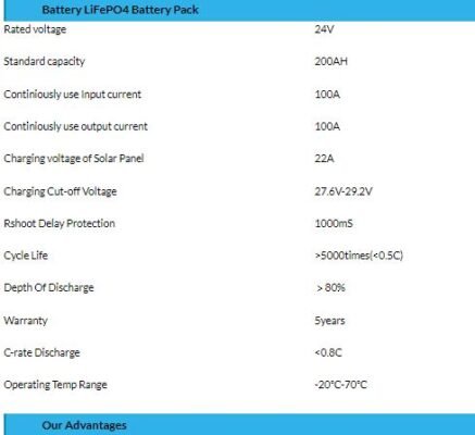 Product Details of Solar LiFePO4 Battery Pack 24v 200ah