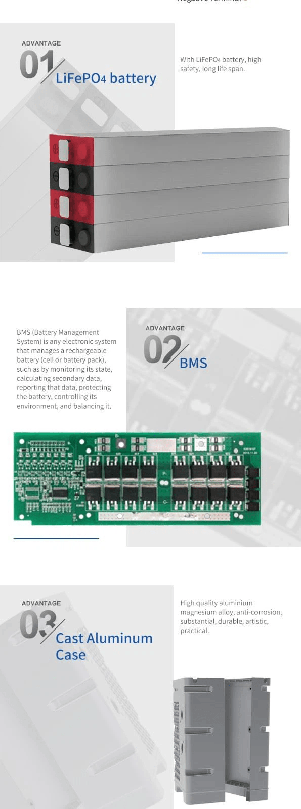 - self discharging: less than 3%/month Deepth of discharge up to 95%